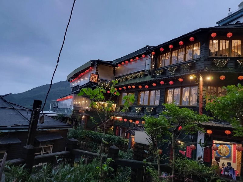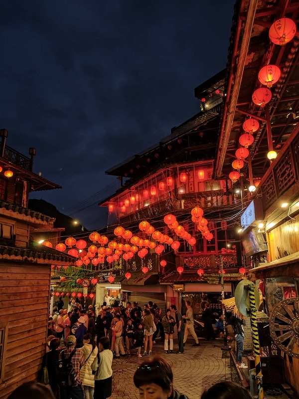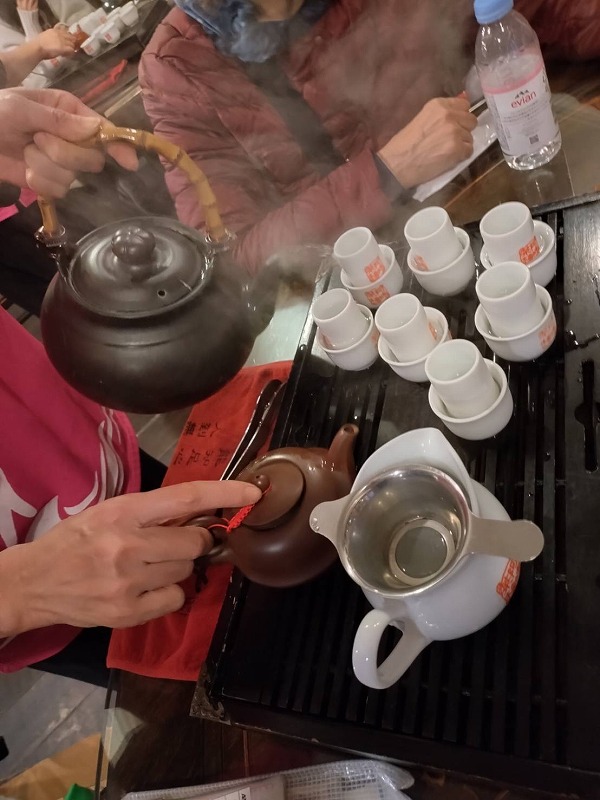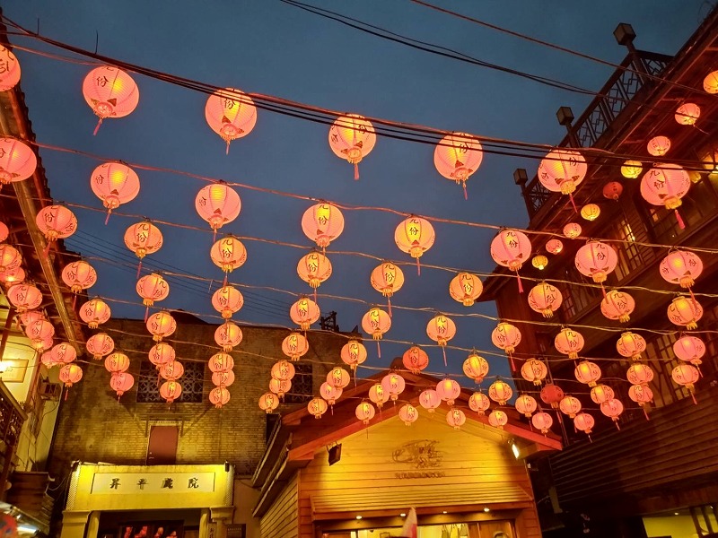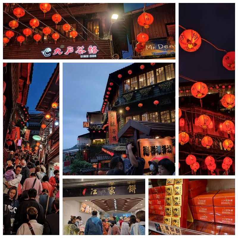 途中の 「阿妹茶楼」で台湾茶をいただきお菓子をつまんで赤い提灯に送られて帰船しました。