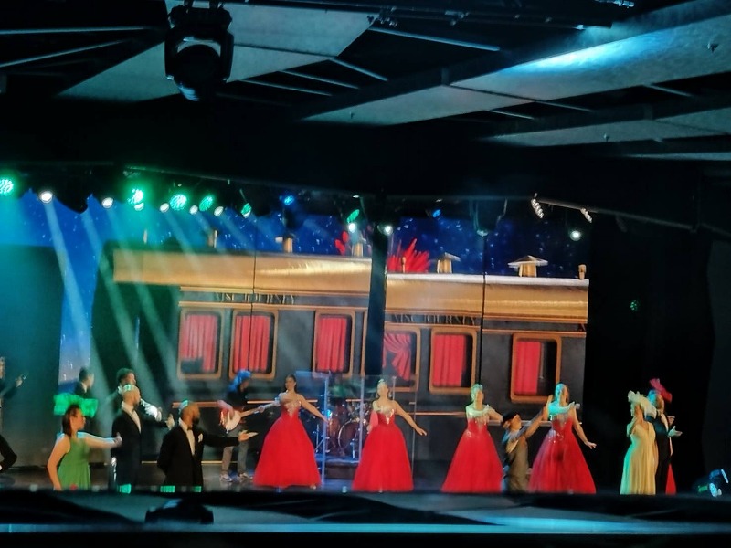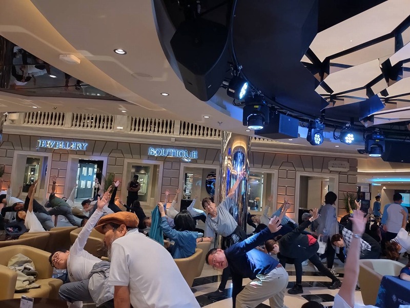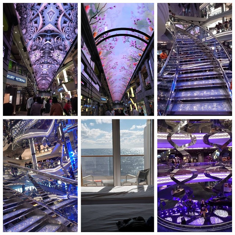船内はクリスタルのキラキラ階段や天井はプロジェクションマッピングで毎日景色が変わり どこもゴージャスでキラキラとして気分も高まります。