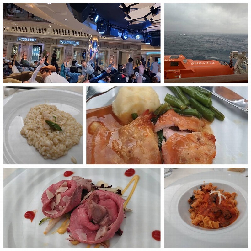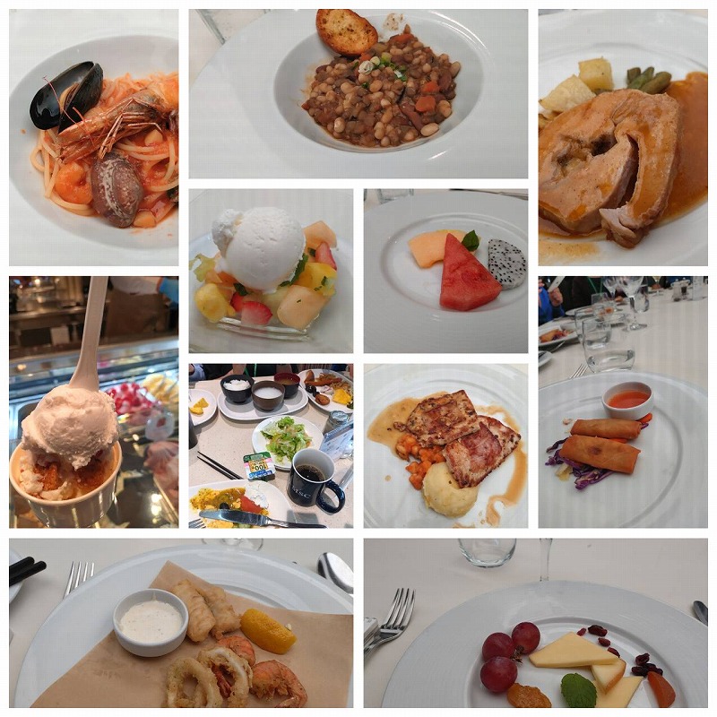 食事は24時間食べ放題です夜のレストランのコースの食事もお代わりし放題です。船内では チーズも作って毎晩ショーが繰り広げられていました。。