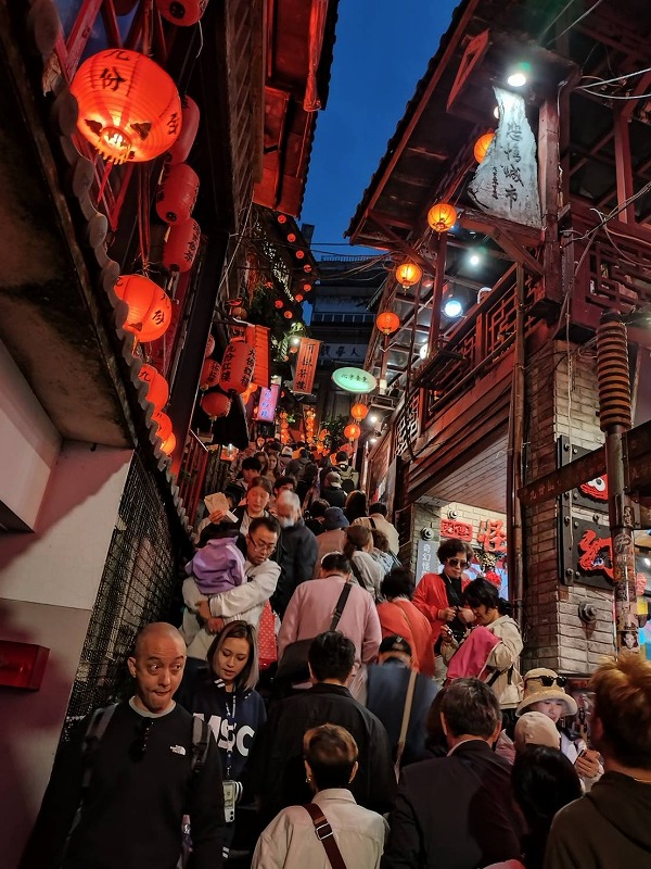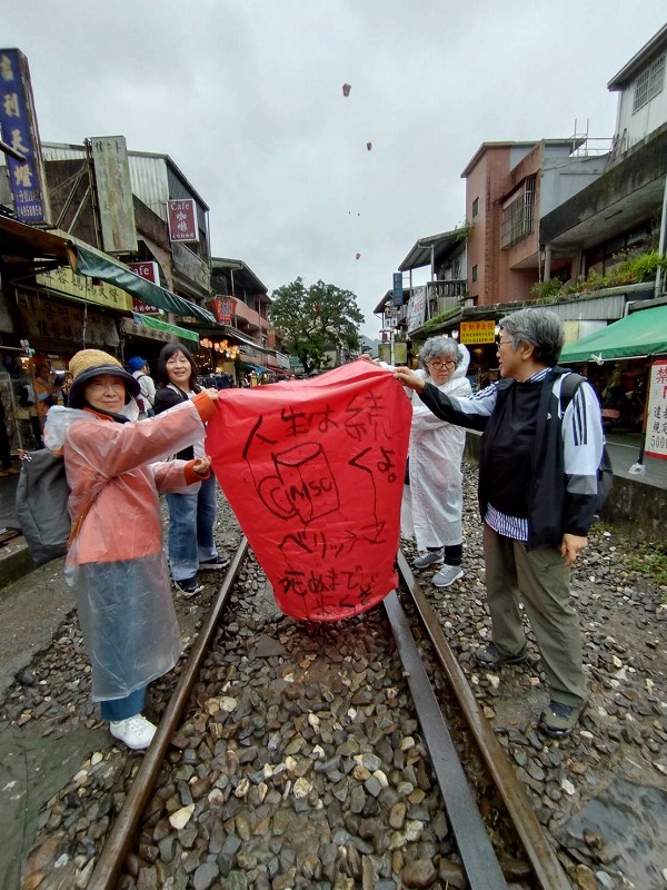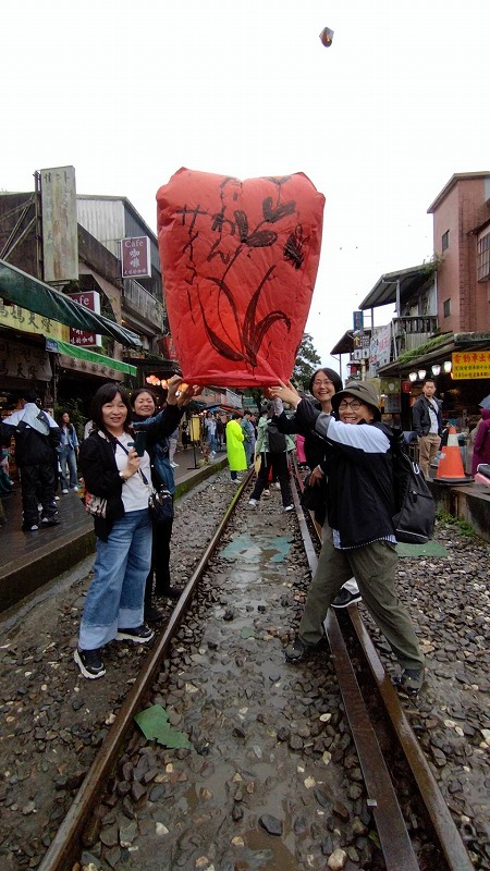 台湾には14人でバスを借りて頂き ジュウフンでランタンを描いて飛ばし、キュウフンに向かいました。