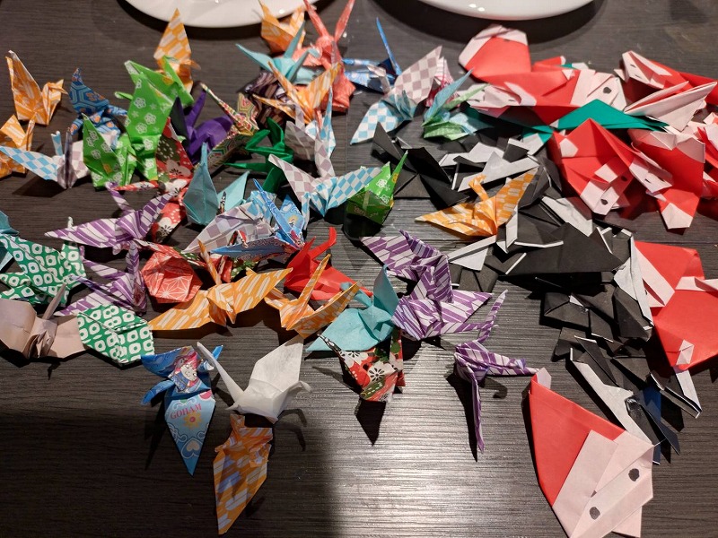レストランではとても楽しく盛り上げてくださったスタッフの方たちに 最後にはみんなで折り鶴を折ってプレゼントしました。