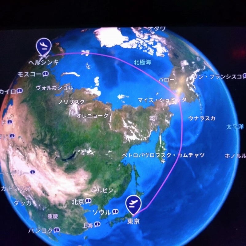 千歳空港から羽田国際線へ行き ロシア上空を飛べないので北極を回りフィンランドへ13時間のフライトでした。